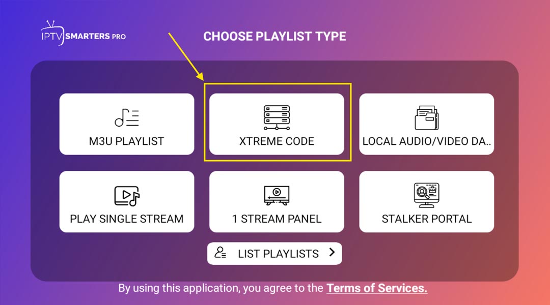 2️⃣ قم باختيار تسجيل عبر (XTREAM CODE)